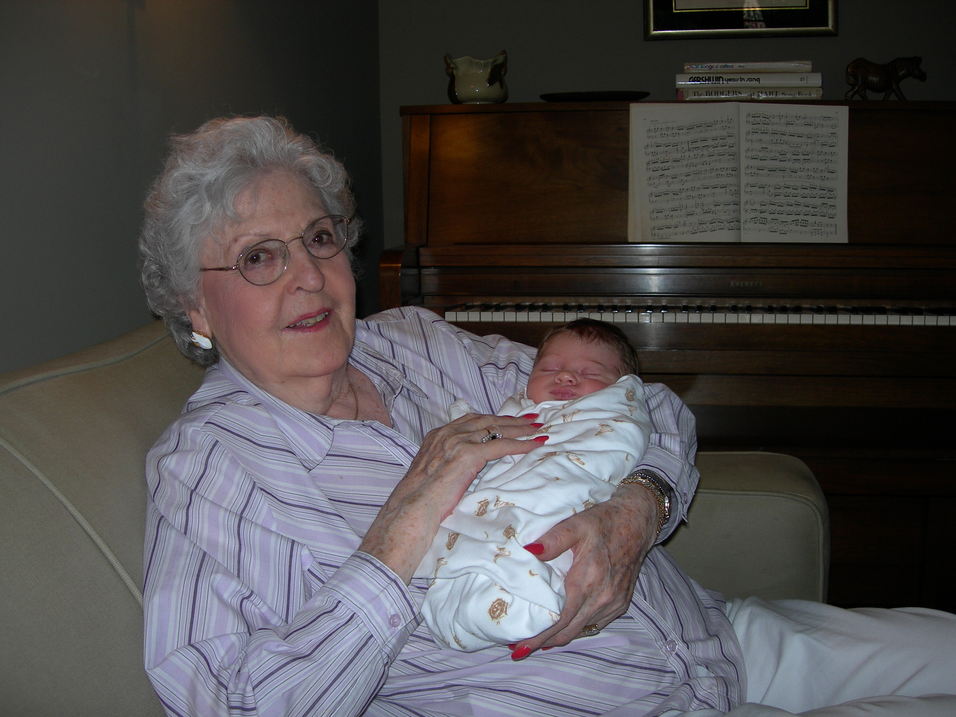 Despite her bouts with exhaustion, she was able to come down to Virginia when our daughter was born. She had arranged for a driver and was the first visitor in the hospital. She stayed with us for 2 weeks. When she returned to New Jersey, we visited her several times during the summer. Each time, my mother hosted a party so that more friends and family could see our baby.